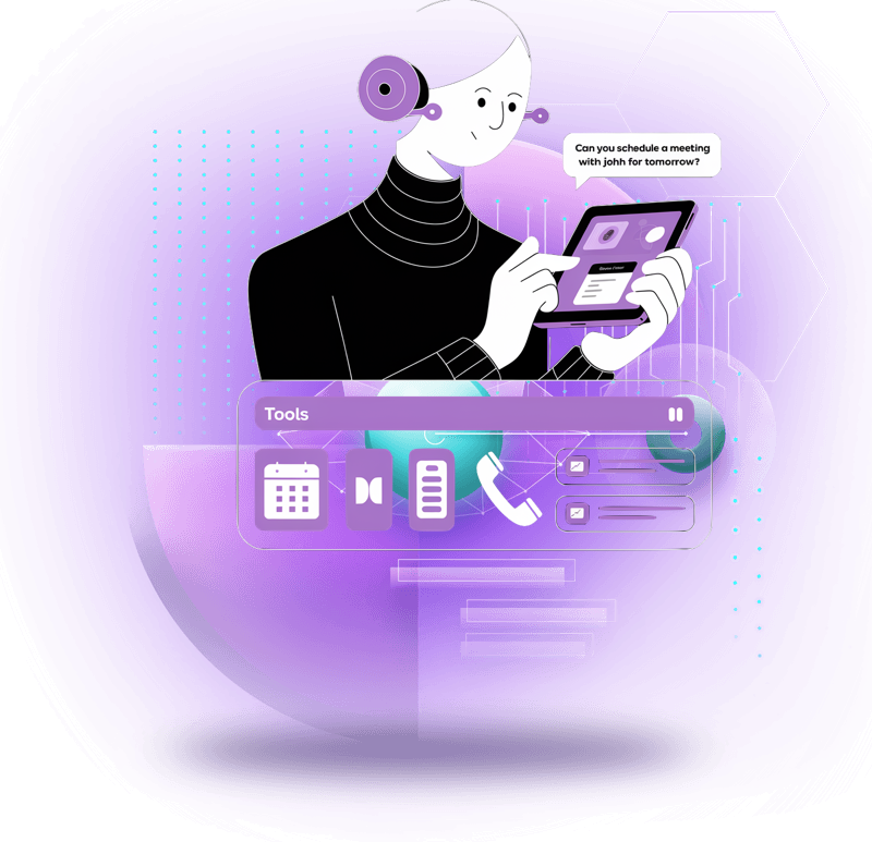 Nuestro asistente virtual conoce a fondo tu empresa y está capacitado para responder como un miembro más del equipo. Desde manejar datos empresariales hasta agendar citas y realizar llamadas en tiempo real, está diseñado para cumplir con tus requerimientos específicos